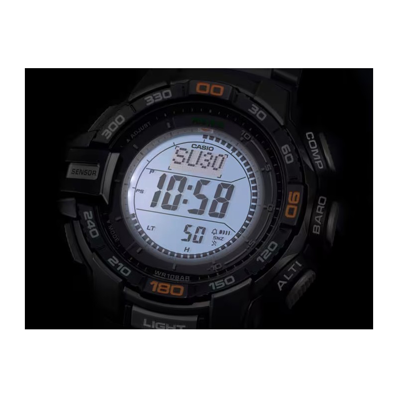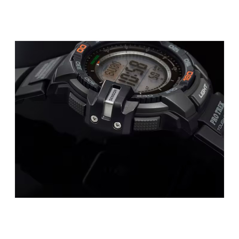 El reloj cuenta con un sensor que mide la temperatura ambiente y la muestra en grados Celsius (-10 °C /+60 °C).
